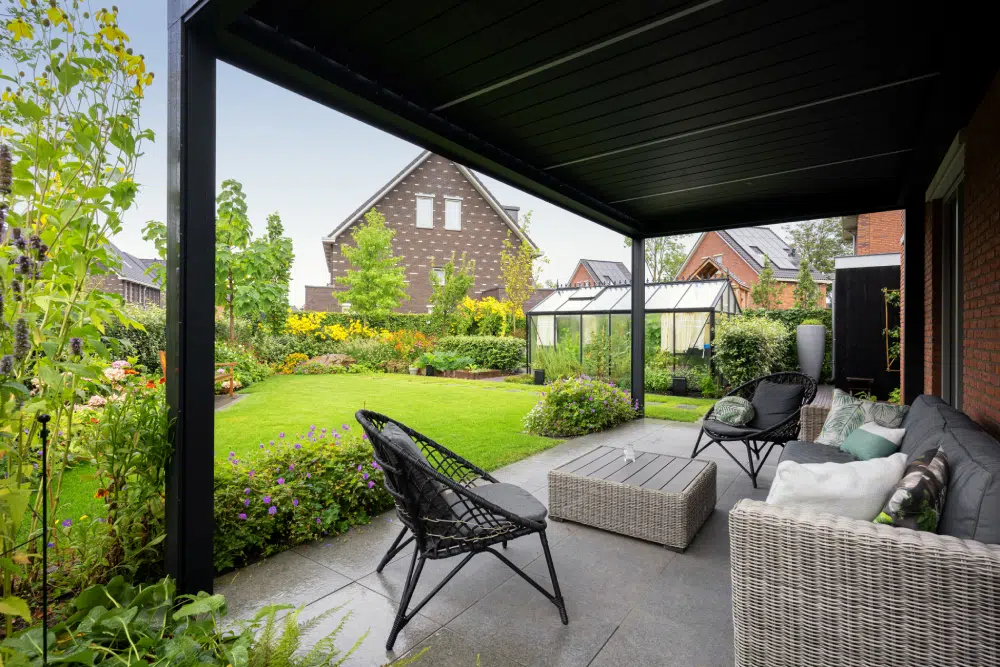 Pergola side garden with greenhouse in Badhoevedorp